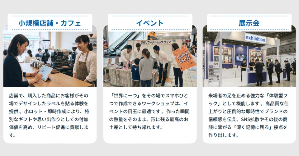 「Label Craft(ラベルクラフト)」はイベントや店舗など、さまざまなシーンでの体験価値の向上に活用できます。